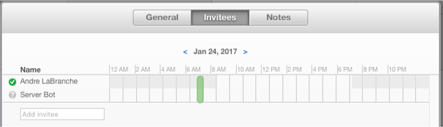 We are running Server.app 5.2 on macOS 10.11.5. In the Mac based Calendar client there is a ‘Check Availability’ button that can be used to verify the schedule of an invitee for their free time. Is there any way to ‘Check availability’ of an invitee using the iOS Calendar app? Is is possible to do so with Server.app’s web client, and if not, are there any other web based calendar clients that are known to provide this functionality? Thanks in advance Ian