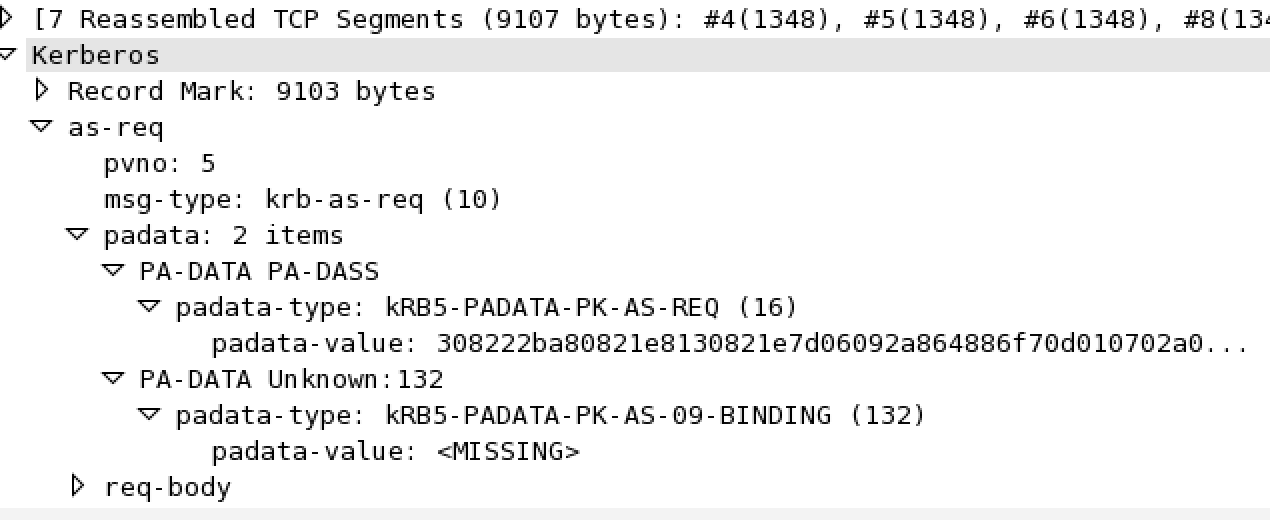 What I am looking for is the configuration of the MacOSX client. When I monitor with wireshark the only time I can see a pkinit AS_REQ is using the commandline: kinit -C KEYCHAIN: But only after I have already unlocked the PIV keychain. The MacOSX 10.9.5 or 10.10 systems have an /etc/krb5.conf that has the following pkinit configuration, under the realms stanza for both an MIT KDC and Windows KDC who are enabled for pkinit. Note you don't need the "krbtgt/realm@realm" in the KDC cert SAN if you set pkinit_require_krbtgt_otherName to false: pkinit_identities = KEYCHAIN: pkinit_anchors=FILE:/usr/local/kerberos/config/etc/pkinit/certificates/trusted-ca pkinit_require_crl_checking = false pkinit_kdc_hostname = Hostname_of_KDC pkinit_cert_match = &&<EKU>msScLogin,<KU>digitalSignature pkinit_cert_match = <SAN>.*@FEDIDCARD.GOV pkinit_require_krbtgt_otherName = false The problem is I never see pam_opendirectory or pam_krb5 make a Kerberos authentication call (AS_REQ) using the PKINIT preauth data (image below). After installing the smartcard services and doing the steps below, I can use the PIV for login and for screenlock, but no Kerberos calls take place. * security authorizationdb smartcard enable * Insert smartcard for USER * sc_auth accept -u USER –k PIV An Apple document talked about configuring /etc/cacloginconfig.plist, which I did, but no change. So I am curious if anyone has it working outside of using the kinit commandline? Thanks Glenn Kerberos AS_REQ using pkinit preauth data (padata): On 8/30/15 9:12 PM, Burgin, Thomas (NIH/NIMH) [C] wrote: